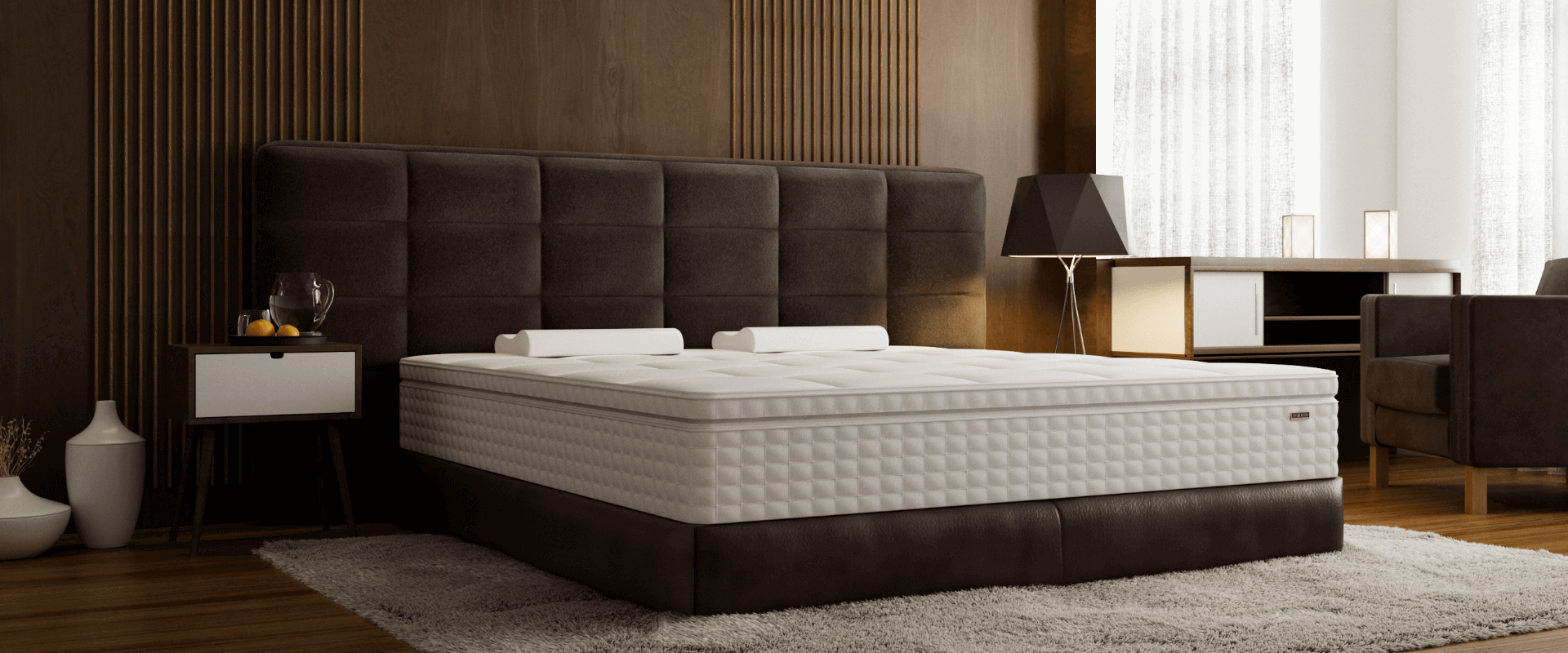 The HEKA AI Mattress is composed of a skin-friendly layer, the HEKA AI Core System (located at the foot of the bed) and HEKA AI Elastic Smart Columns.